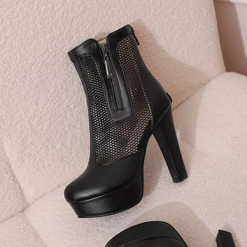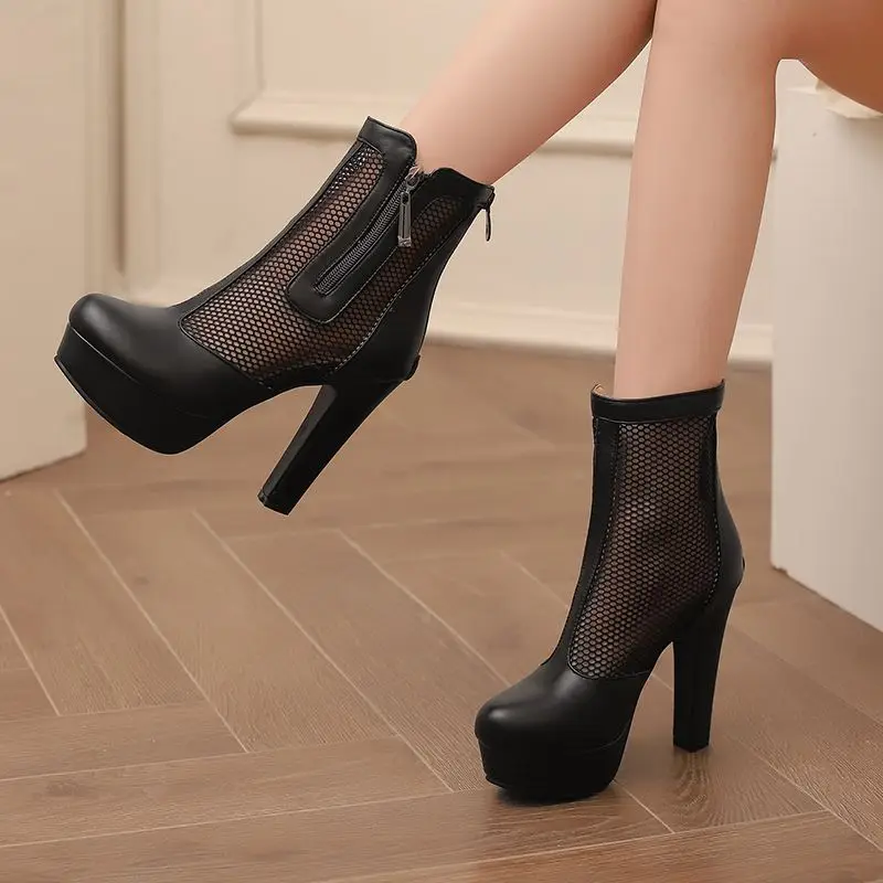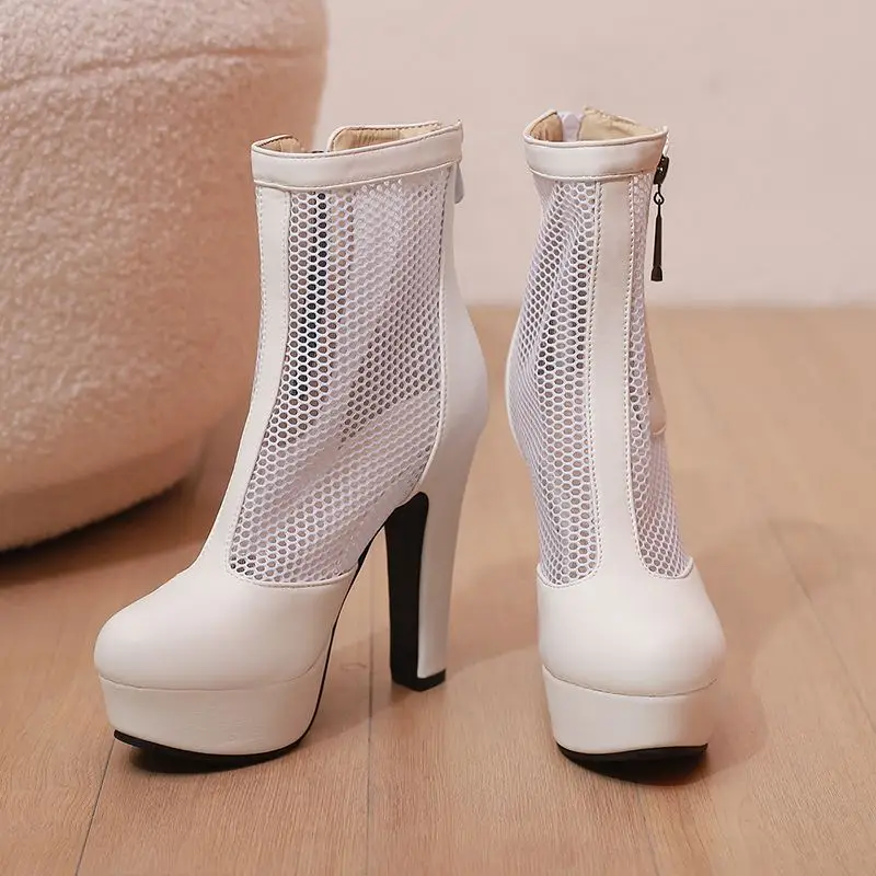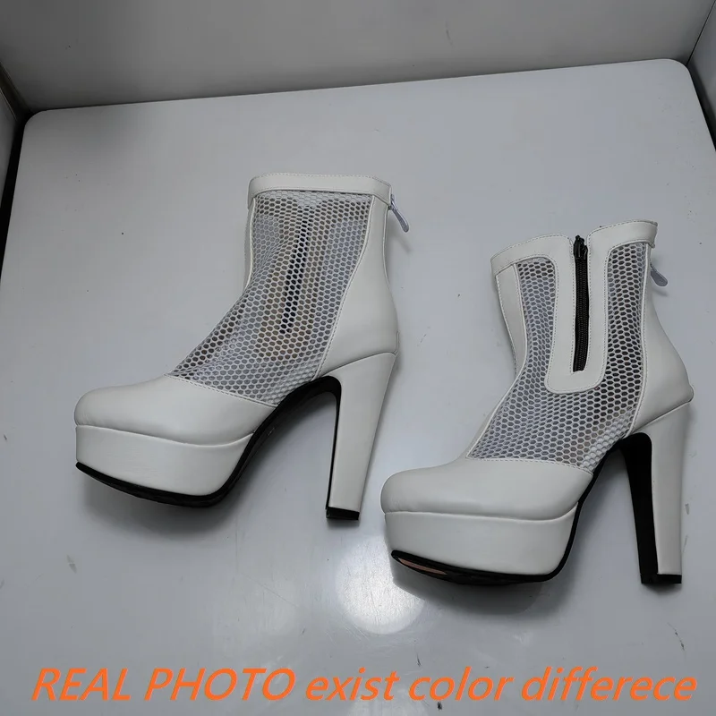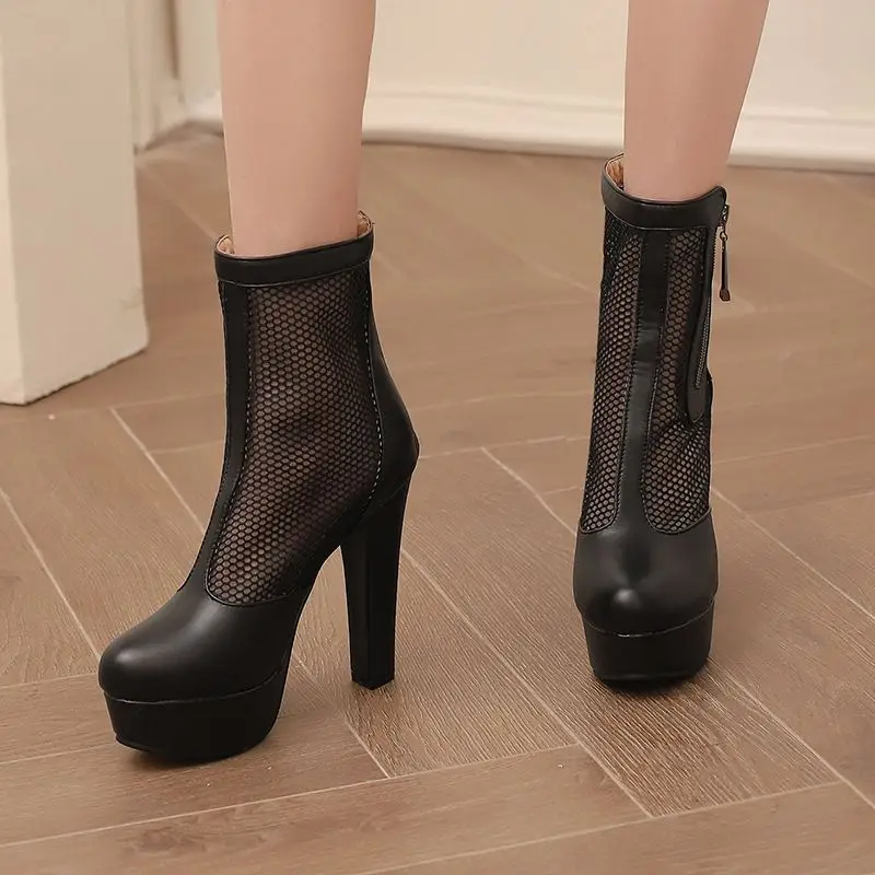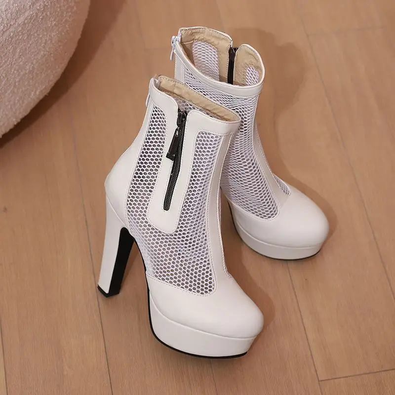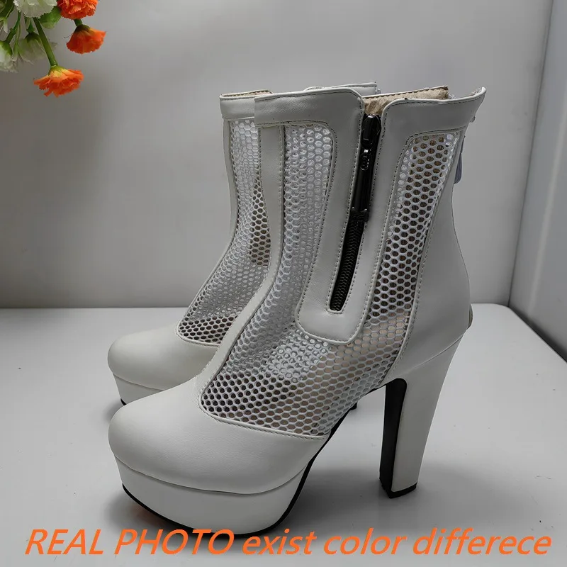 ORCHA LISA Summer Boots for Women Ultrahigh Heel 11.5cm Platform 2.5cm Zipper Breathable Mesh 48 49 50 Sexy Dating Bota