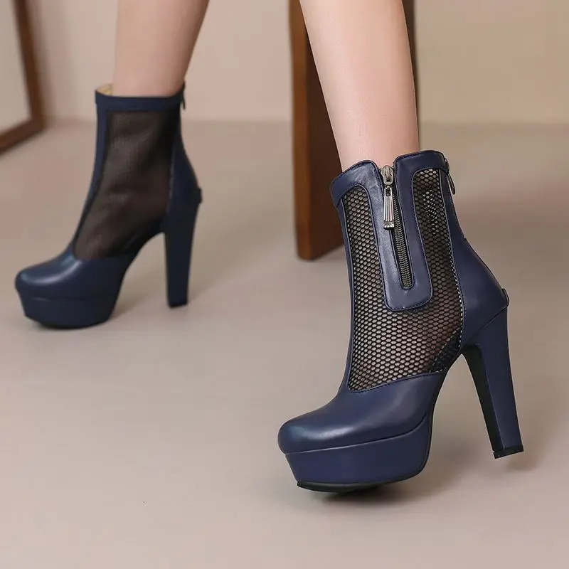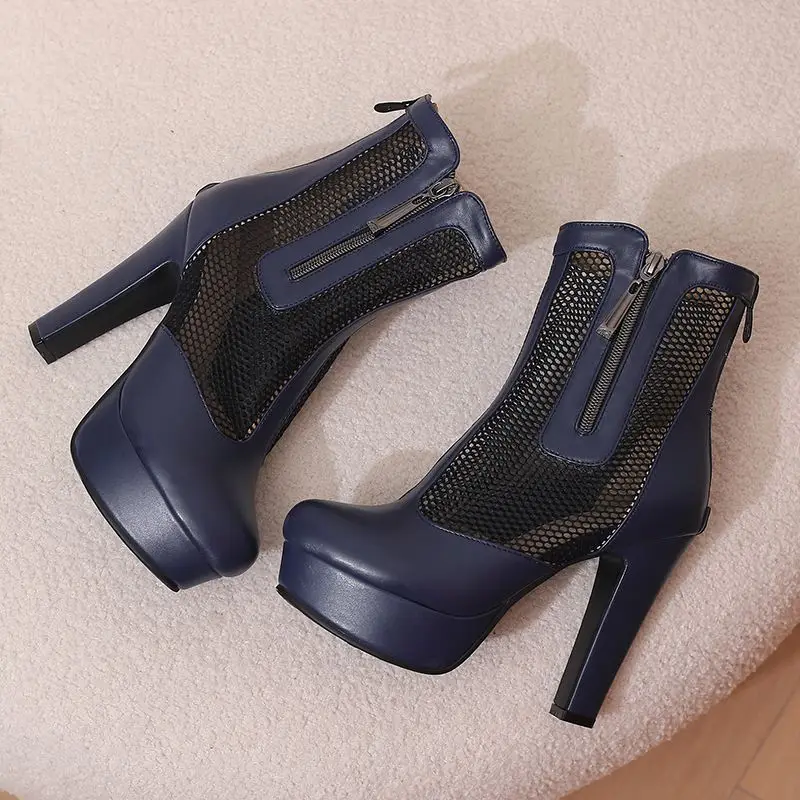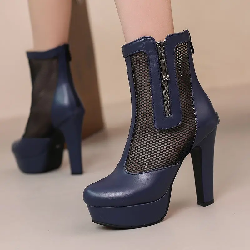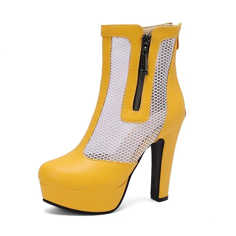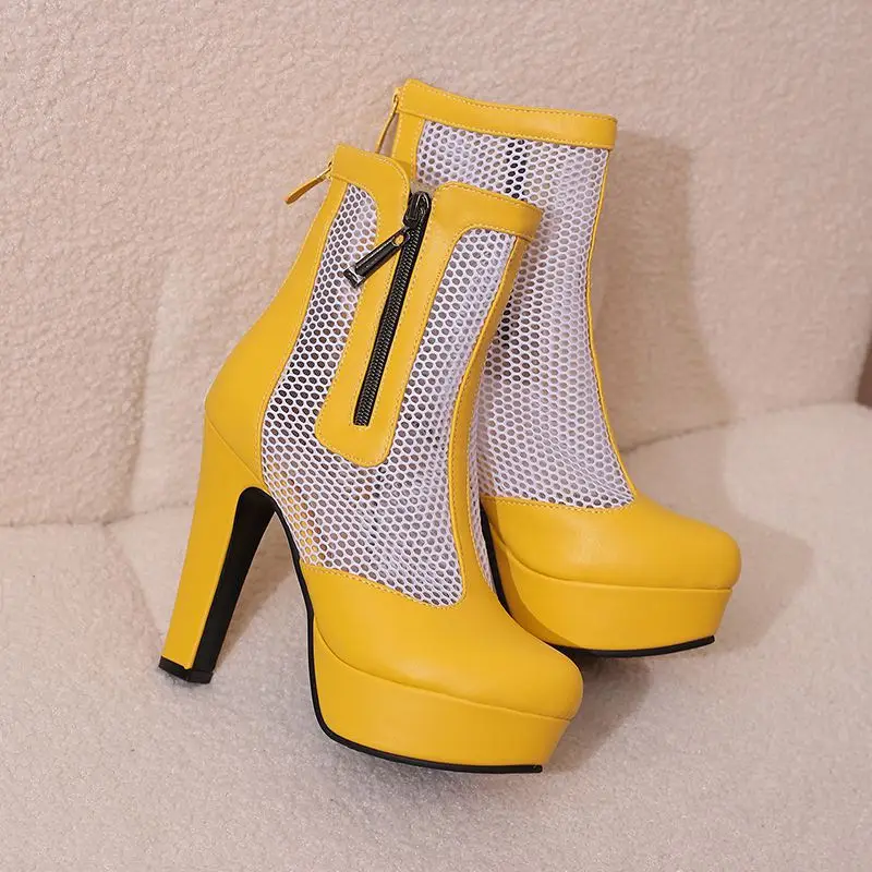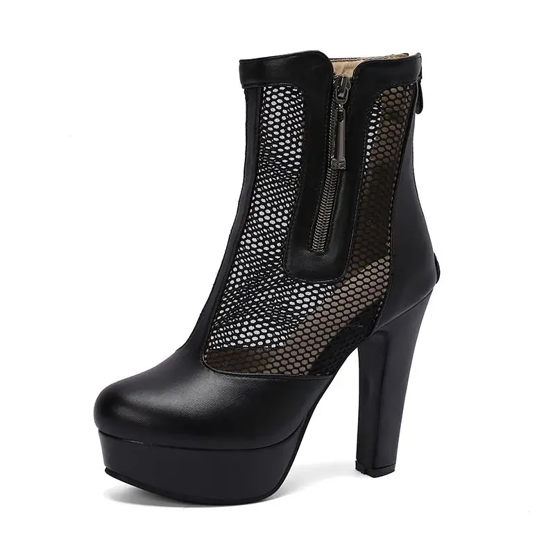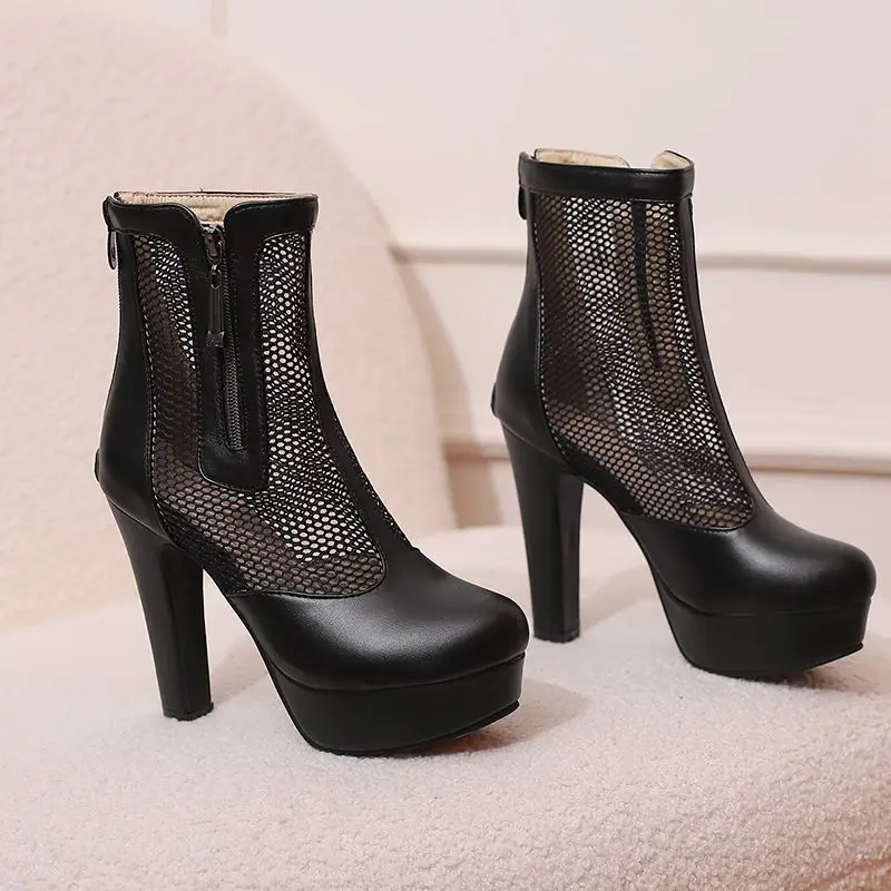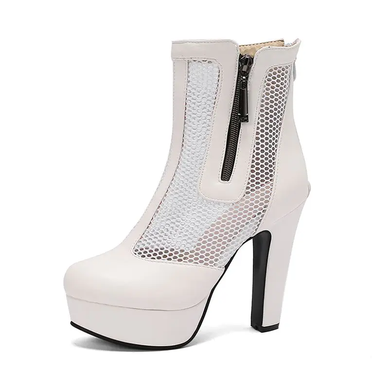 ORCHA LISA Summer Boots for Women Ultrahigh Heel 11.5cm Platform 2.5cm Zipper Breathable Mesh 48 49 50 Sexy Dating Bota